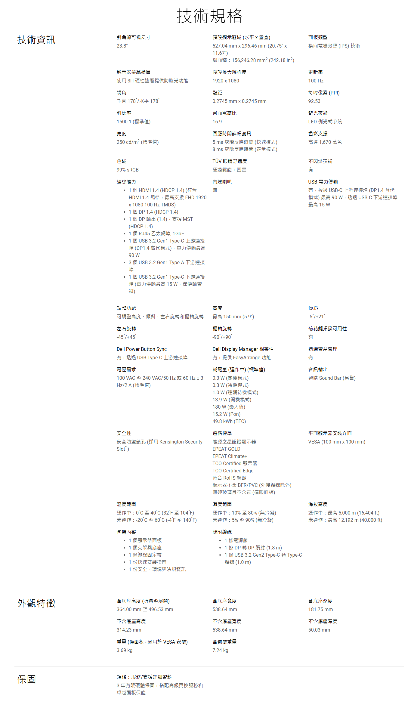 1 個 USB 3.2 Gen1 Type-C 下游連接埠 (電力傳輸最高 15 W,僅傳輸資料)
