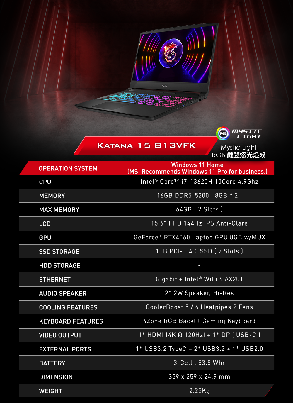 ▸ GPU: GeForce RTX4060 Laptop GPU, GDDR6 8GB