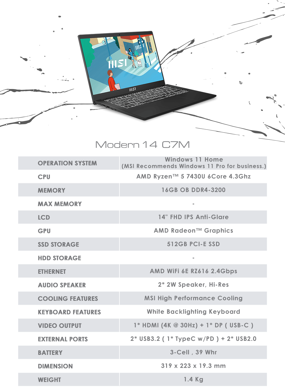 ▸ OS: Windows 11 Home (MSI recommends Windows 11 Pro for business.)