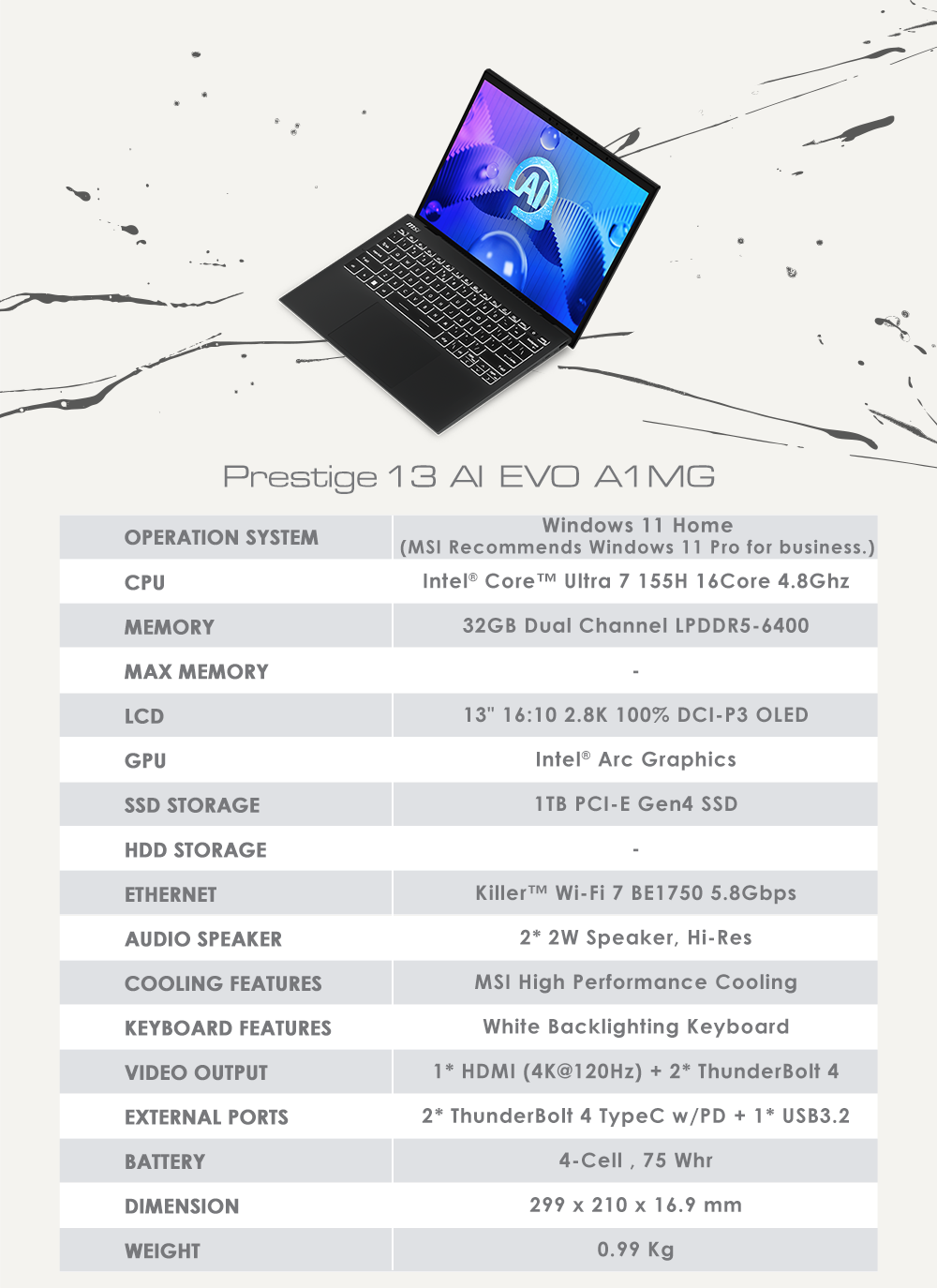 ▸ OS: Windows 11 Home (MSI recommends Windows 11 Pro for business)