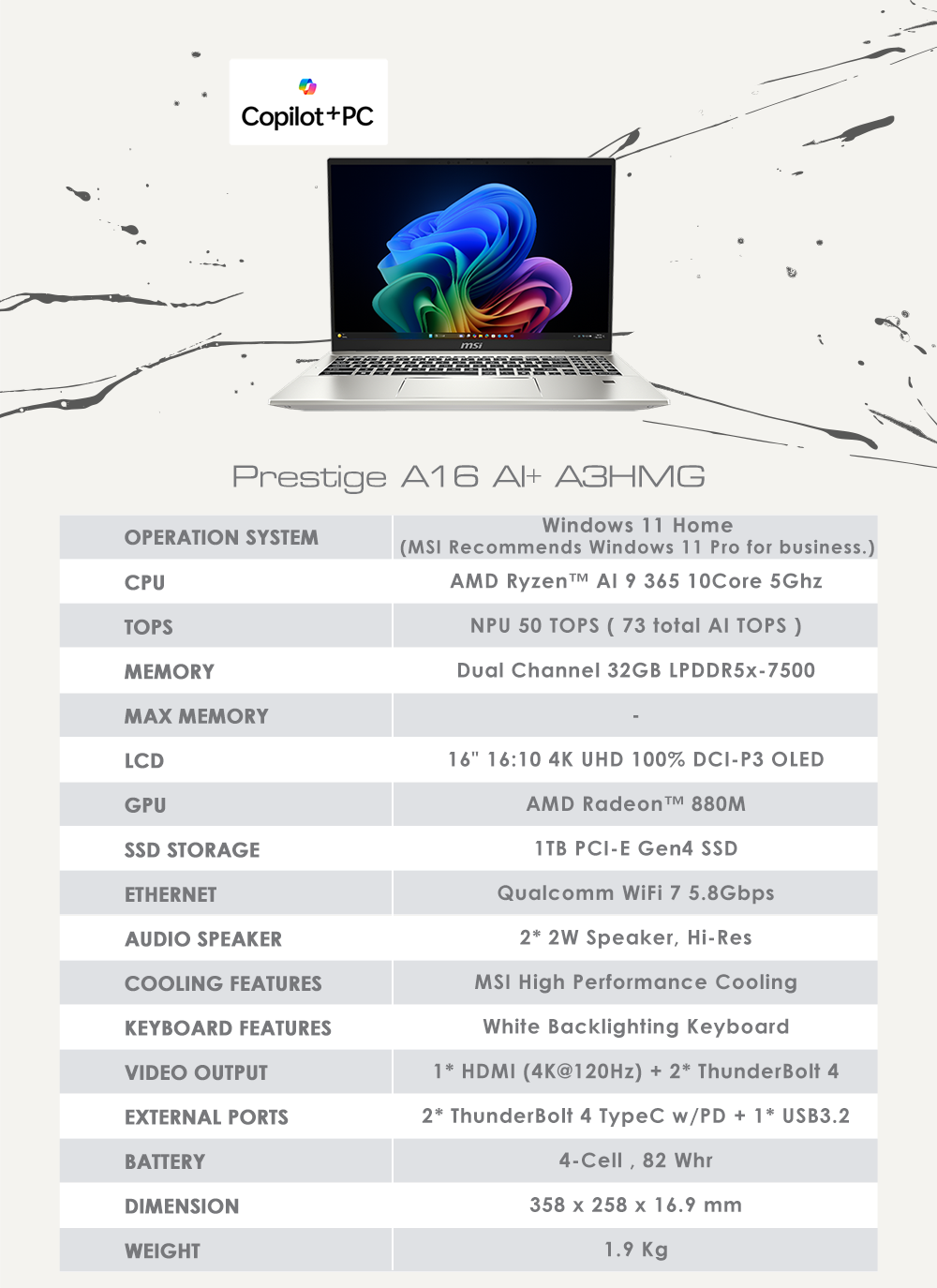 ▸ CPU: AMD Ryzen™ AI 9 365 10Cores 20Threads Up to 5.0Ghz