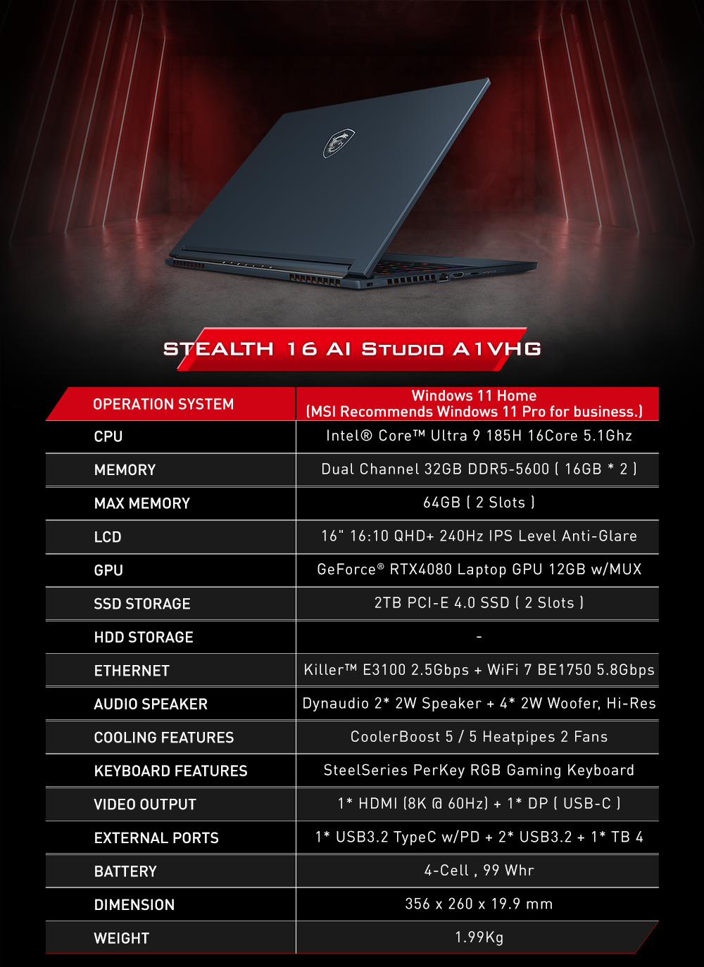 ▸ GPU: GeForce RTX4080 Laptop GPU, GDDR6 12GB