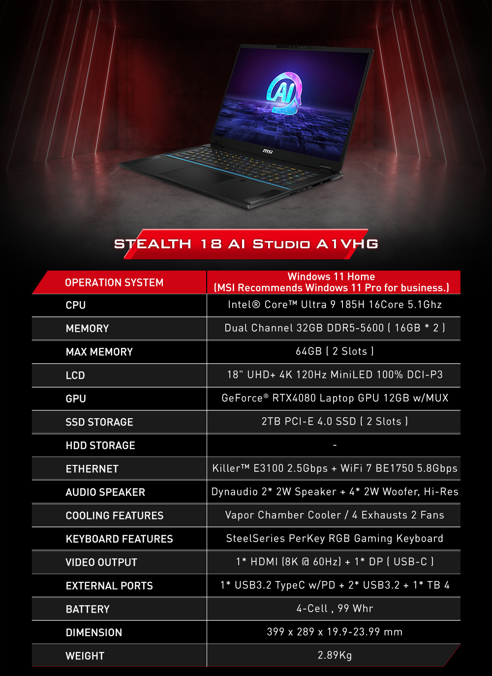▸ GPU: GeForce RTX4080 Laptop GPU, GDDR6 12GB