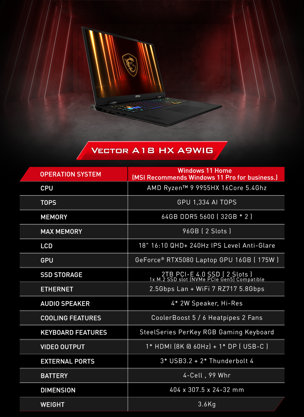▸ CPU: AMD Ryzen™ 9 9955HX 16C32T Up to 5.4Ghz